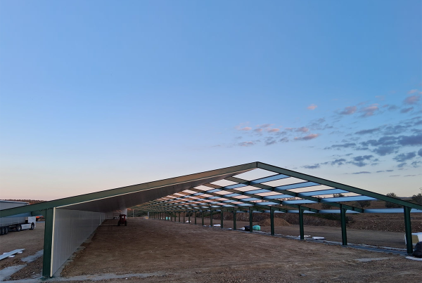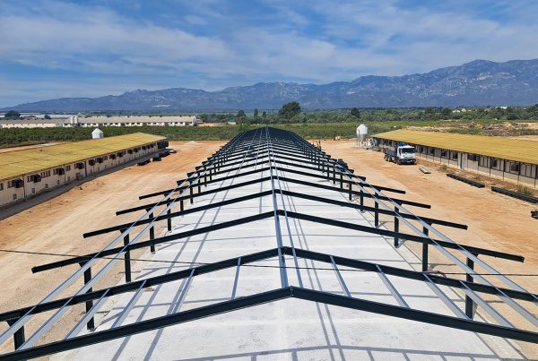 Esta nave destinada a la cría de pollos de engorde en la provincia de Badajoz, tiene unas dimensiones de 125x17m, más dos cuartos técnicos de 5x5.
